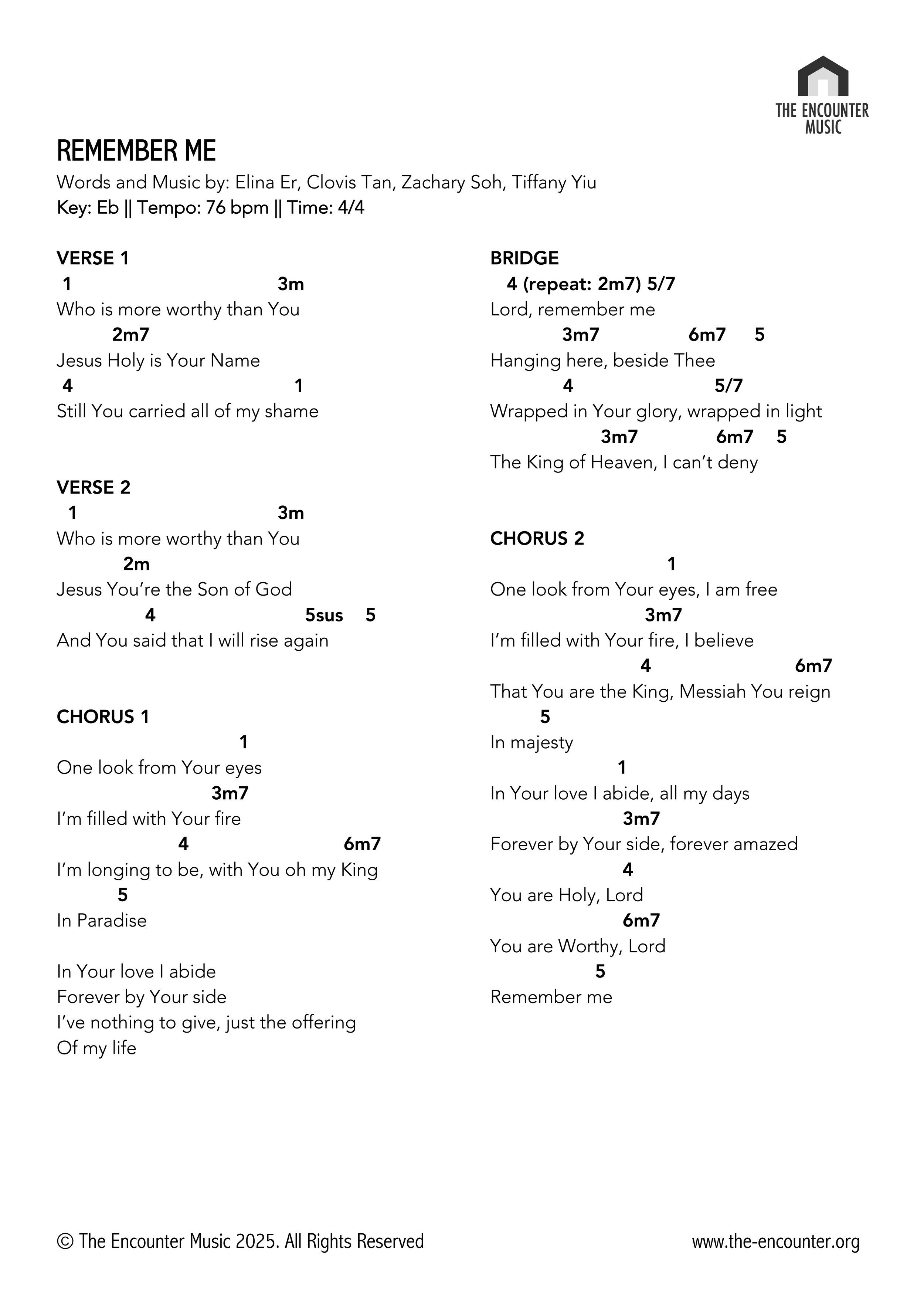 At its core, Remember Me is our story too. Like the thief we stand guilty with nothing to bring, but Jesus forgives, removes every sin and promises paradise. The song invites us to see ourselves on that cross beside Him, to hear His words of mercy and to respond with repentance and surrendered worship.